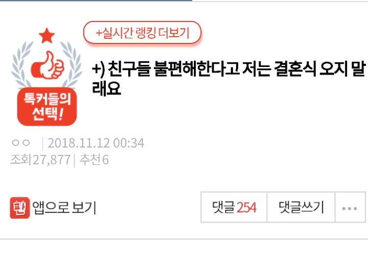 그리고 몇달전에 친구 하나가 결혼 날을 잡았다고 하더라고요. 단톡방에서 다들 축하한다고 했고, 저도 결혼식날 꼭 예쁘게 하고 가서 신부 기 팍팍 살려주겠다고 했어요. 근데 갑자기 친구 중에 하나가 ‘니가 결혼하는 것도 아닌데 니가 왜 이쁘게꾸며 ㅋㅋㅋㅋ ‘ 하면서 기분나쁘게 웃더라고요. 그리고 다른 친구는 ‘친구가 이쁘게 해온다고 신부가 기 사는건 뭐야’ 하면서 또 시비....