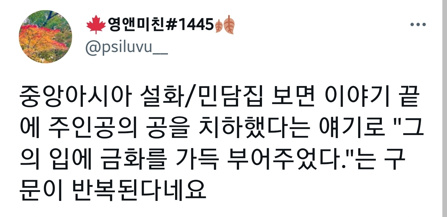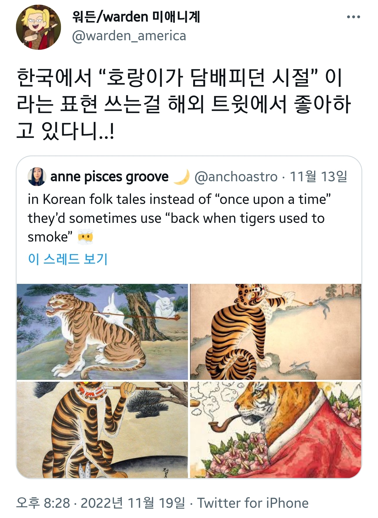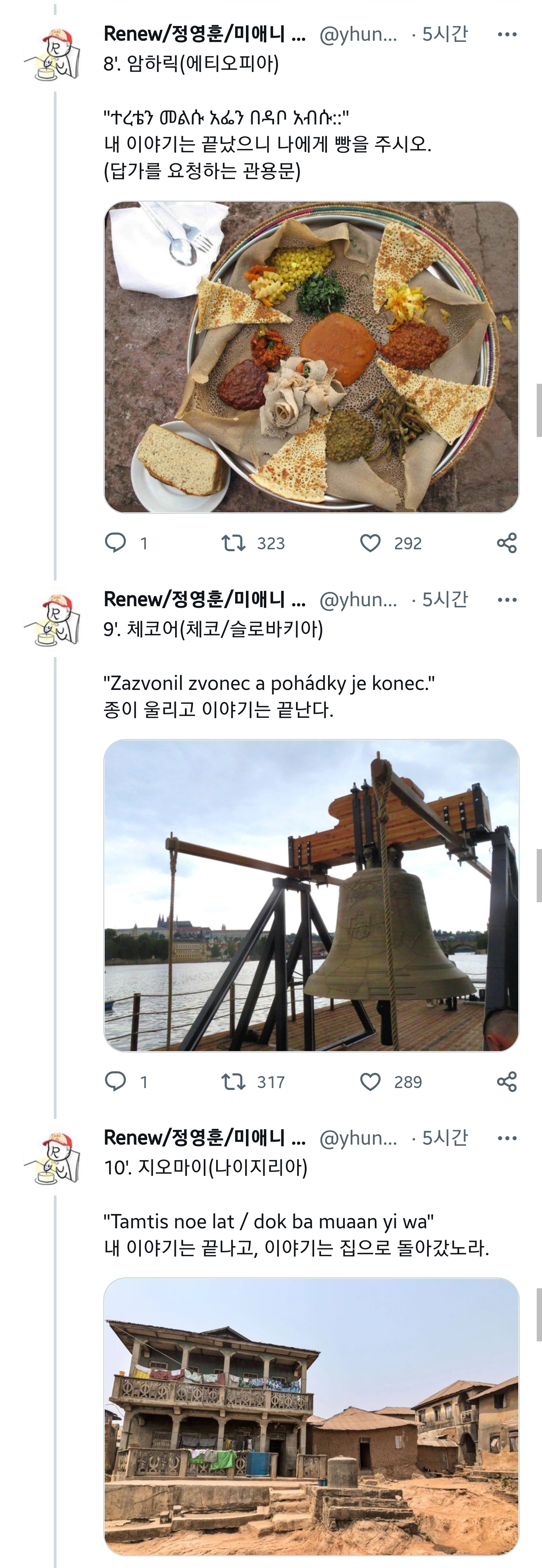 작성자얼죽아 협회장 작성시간 23.03.05 진짜 진짜 흥미돋이닼ㅋㅋㅋㅋ우리나라 끝맺음은 진짜 오래오래 행복하게 살았답니다밖에 생각이 안 나는데 영어권의 they lived happily ever after에서 온 것 같고... 호랑이 담배피던 시절같은 정도의 문구는 딱히 없나! 이야기 읽어본지가 넘 오래돼서 생각이 안 나네 ㅋㅋ