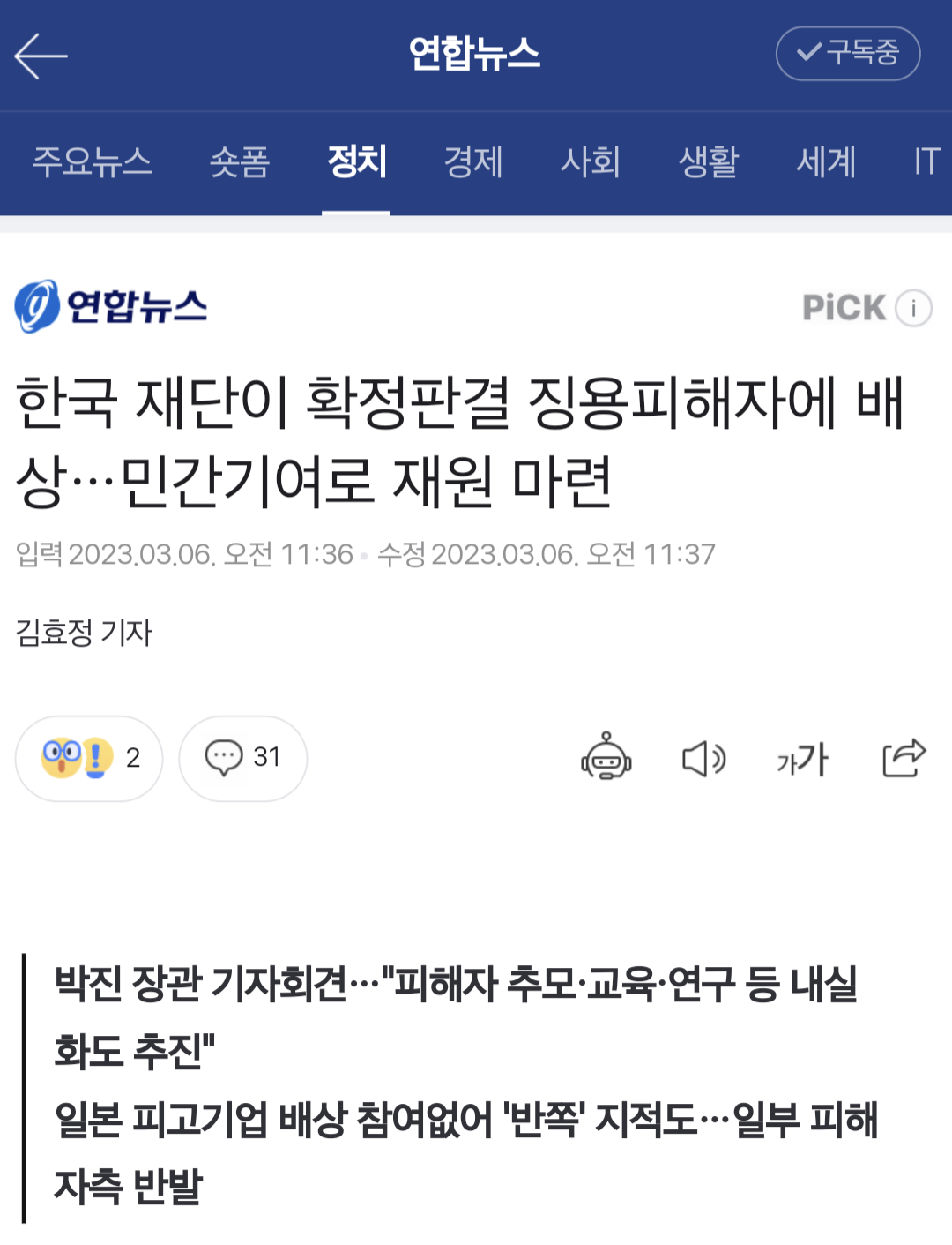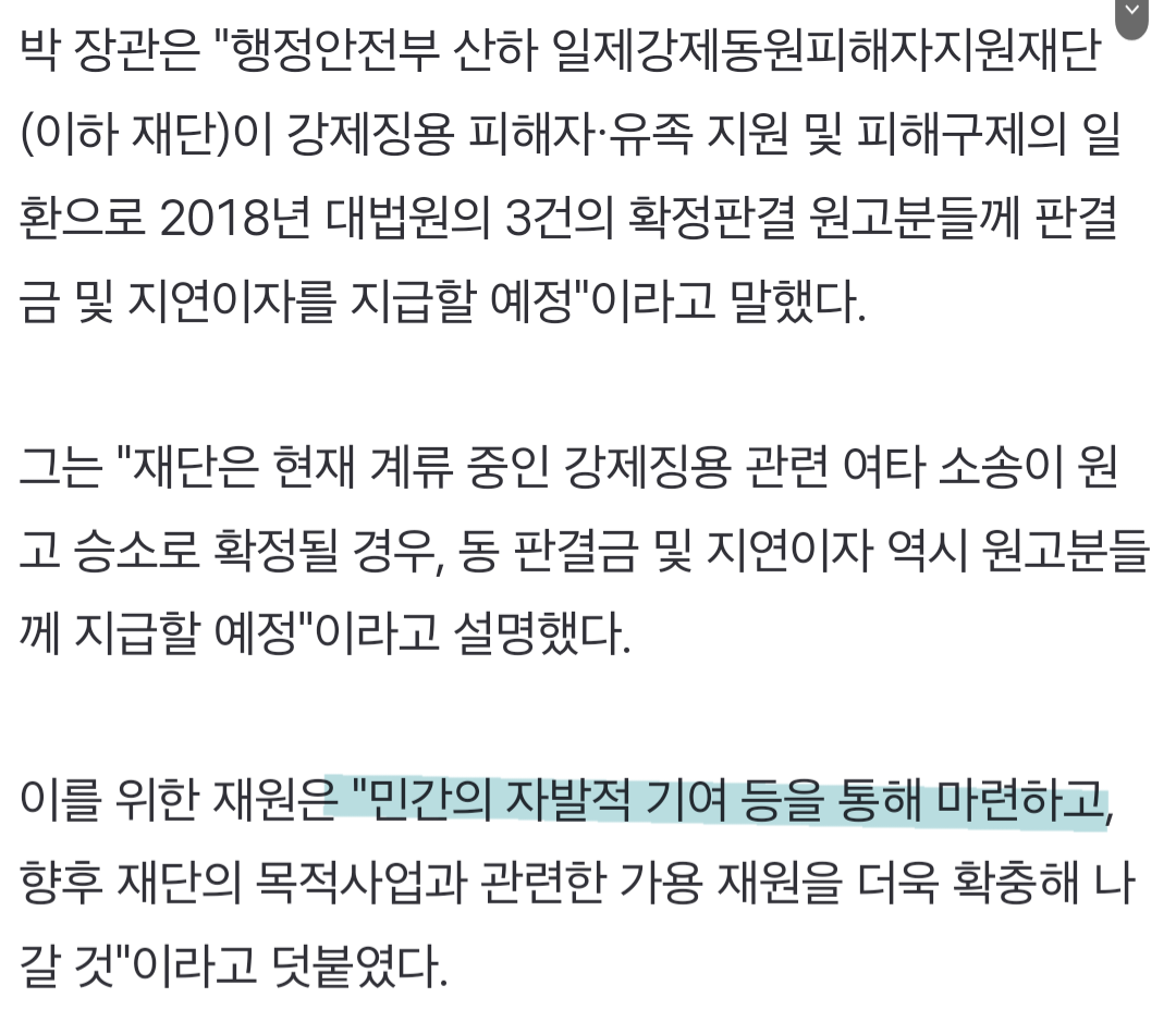 [여시뉴스데스크]한국 재단이 확정판결 징용피해자에 배상…민간기여로 재원 마련 작성자콤부차 베리|작성시간23.03.06|조회수744 목록 댓글 20 글자크기 작게가 글자크기 크게가 출처 : https://n.news.naver.com/article/001/0013794470?sid=100한국 재단이 확정판결 징용피해자에 배상…민간기여로 재원 마련박진 장관 기자회견…"피해자 추모·교육·연구 등 내실화도 추진" 일본 피고기업 배상 참여없어 '반쪽' 지적도…일부 피해자측 반발 정부가 2018년 대법원으로부터 배상 확정판결을 받은 일제 강n.news.naver.com전문 출처로 다음검색 현재 게시글 추가 기능 열기 북마크 공유하기 신고 센터로 신고 댓글 댓글 20 댓글쓰기 답글쓰기 댓글 리스트 작성자대통령 이재덩 | 작성시간 23.03.06 ㅅㅂ 매국노 새끼들 대체 뭐하는거냐 작성자울챠 | 작성시간 23.03.06 민간기여 시발 ㅋㅋㅋㅋ 작성자톡희천국 | 작성시간 23.03.06 시이발 누가 돈달래 친일파들아? 작성자광어반연어반 | 작성시간 23.03.06 한국기업도 할 수 있지 근데 일단 일본한테 책임을 물어야지 장난하냐 뭐하는거냐 작성자Sgwudbx | 작성시간 23.03.06 매국노 개새끼들 댓글 전체보기