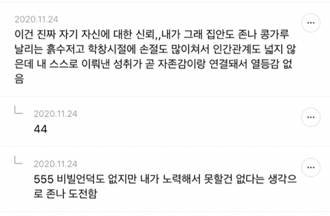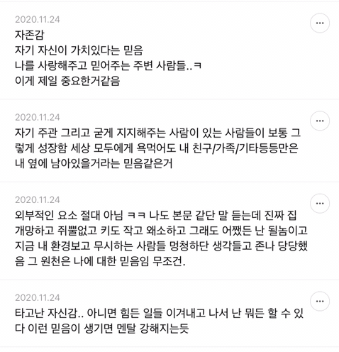작성자디카페인으로다 작성시간 23.03.07 경험과 자아성찰으로 충분히 다져질수잇숨