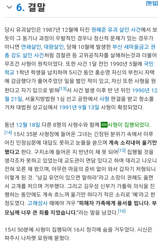 본인도 사형을 원하고 당시 사형제도가 남아있어서 범인은 91년사형됨
