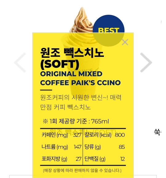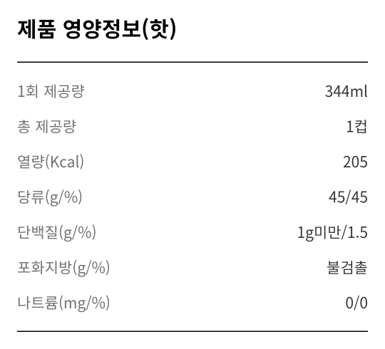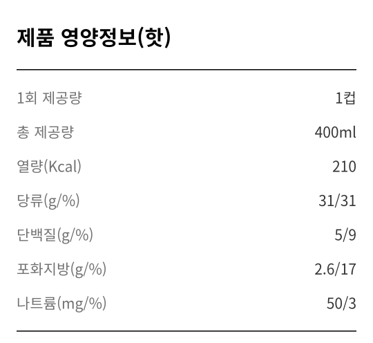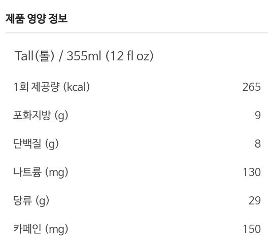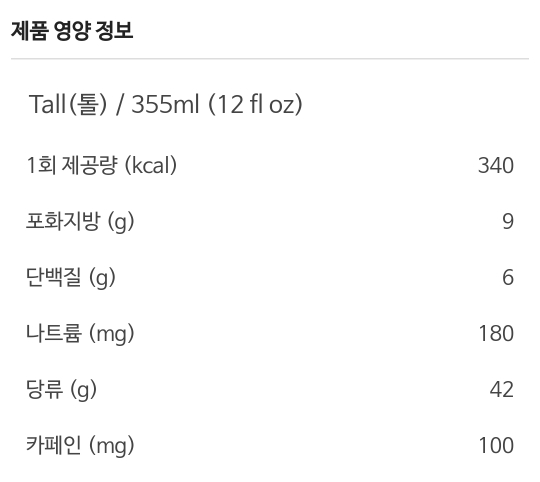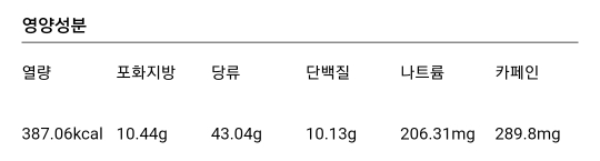 프랜차이즈 카페들 인기메뉴 영양성분표 가져온거고