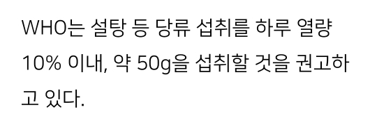 참고로 WHO에서 권장하는 하루 당 섭취량은