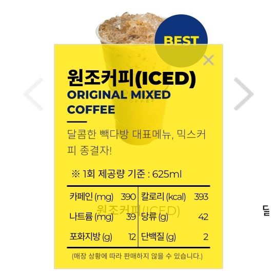 메가커피 플레인퐁크러쉬 당류 64.9g