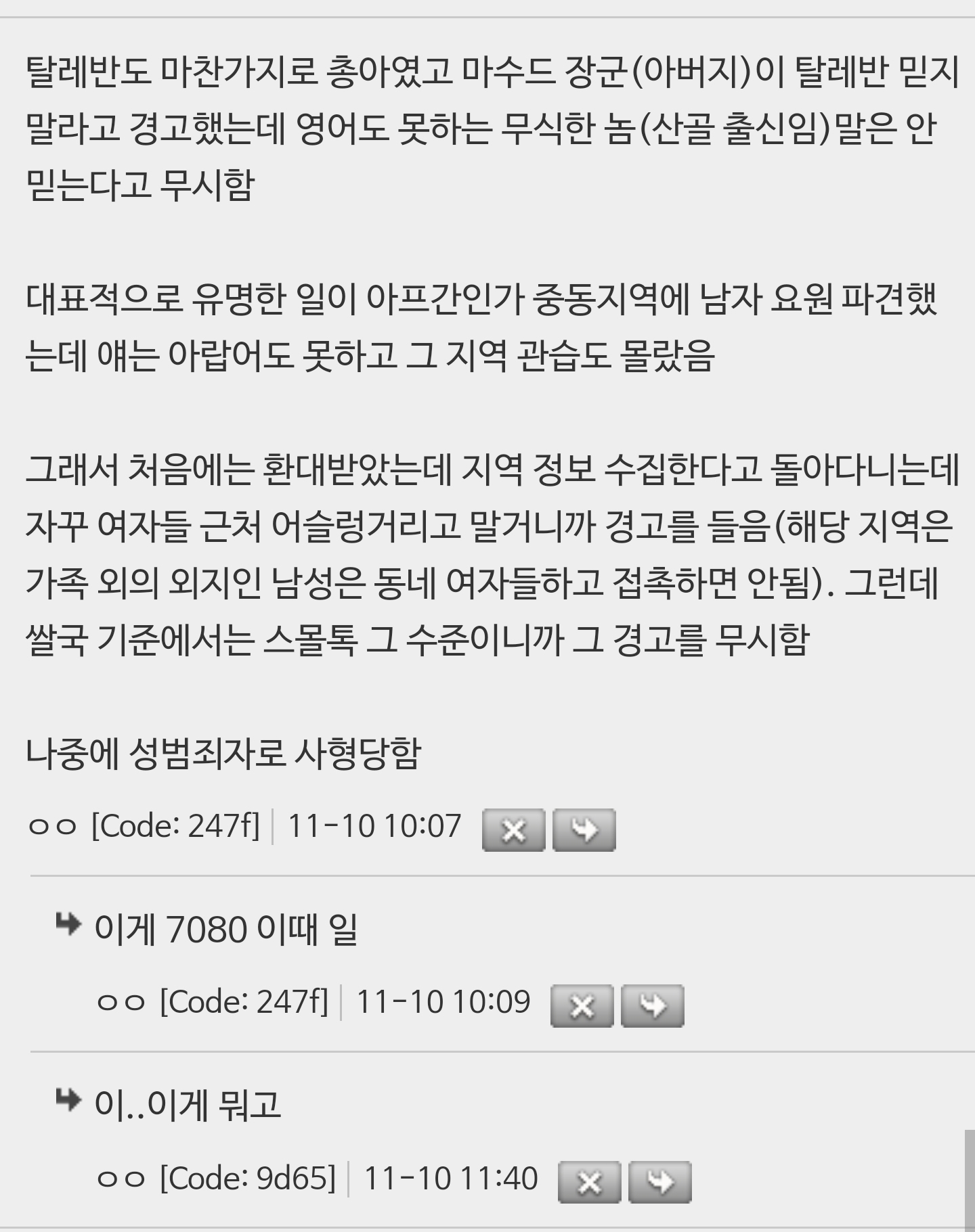 아프간-소련전쟁은 옛날이라쳐도 당장 가까운 이라크 전에서도 현지문화나 파벌, 종교에 대한 이해 없어서 개망했잖아ㅋㅋㅋ 좀 될만한 놈들 있긴 했는데 단발성이고 지원도 안되고 망했고