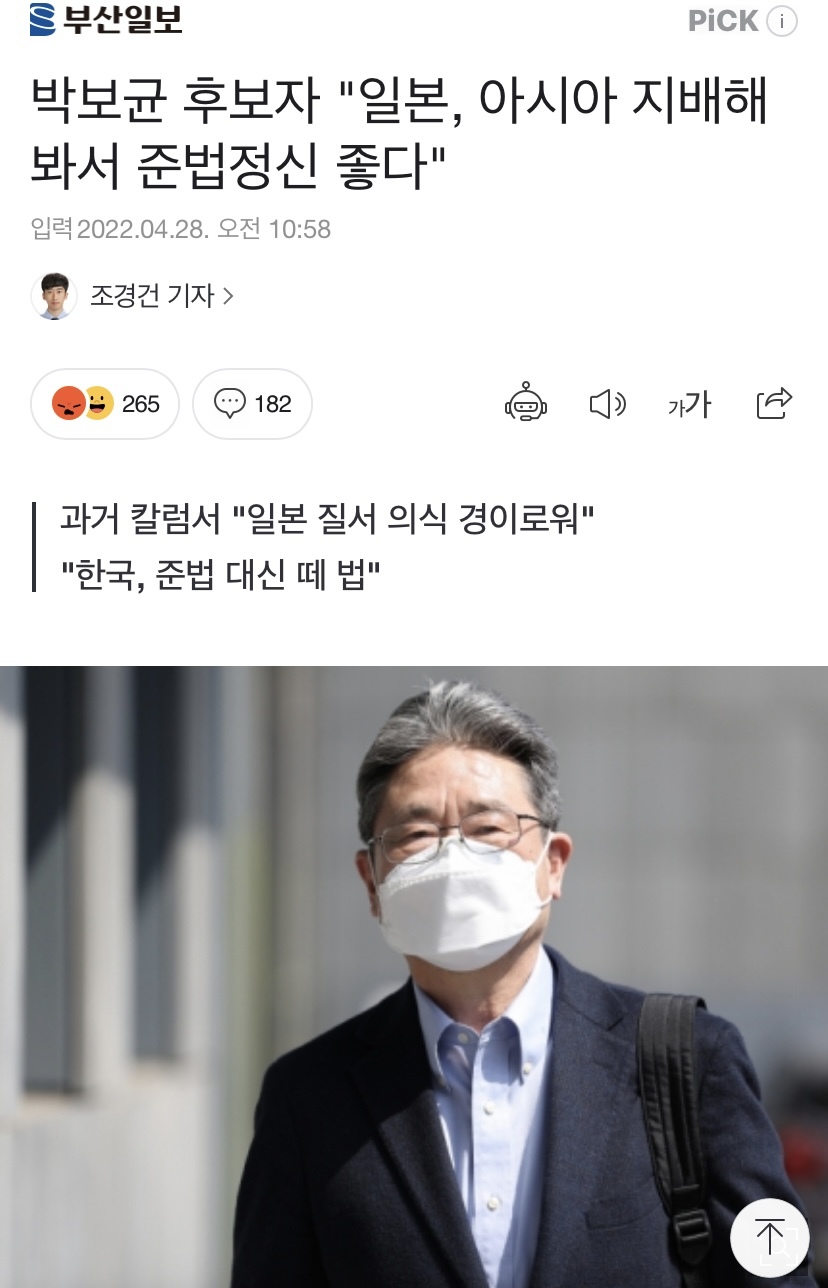 박보균 문화체육관광부 장관 후보자가 과거 "일본은 아시아를 지배해 봤기 때문에 준법정신이 좋다"는 취지의 발언을 한 사실이 알려져 논란이 일고 있다.