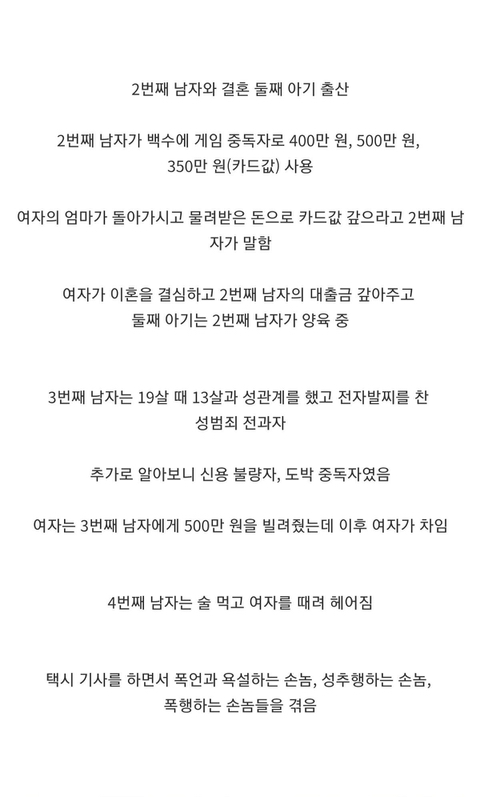 아무도 저 여성 인생 대신 안 살아줘 지금 쓴소리 마음 상하게 한다고 못하고 부둥부둥 해줘서 또 남자만나면 좆되는 건 저 여성이라고~~~