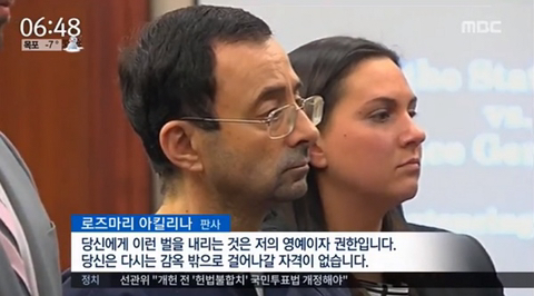 이날 법정에 선 피고인은 선수들에게 치료를 빙자해서 성폭력을 저지른 미국 체조 대표팀 주치의였다.