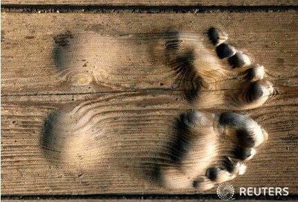가장 깊게 파인 곳은 화치 씨의 엄지발가락 아랫부분이 닿는 부분으로, 깊이가 3cm나 됩니다.