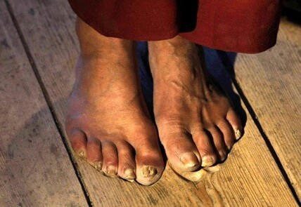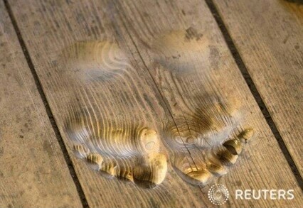 그것은 바로 나무 바닥에 새겨진 발바닥 형상. 20년 동안 매일 수천 번씩 절을 하자 저절로 만들어졌다고 합니다.