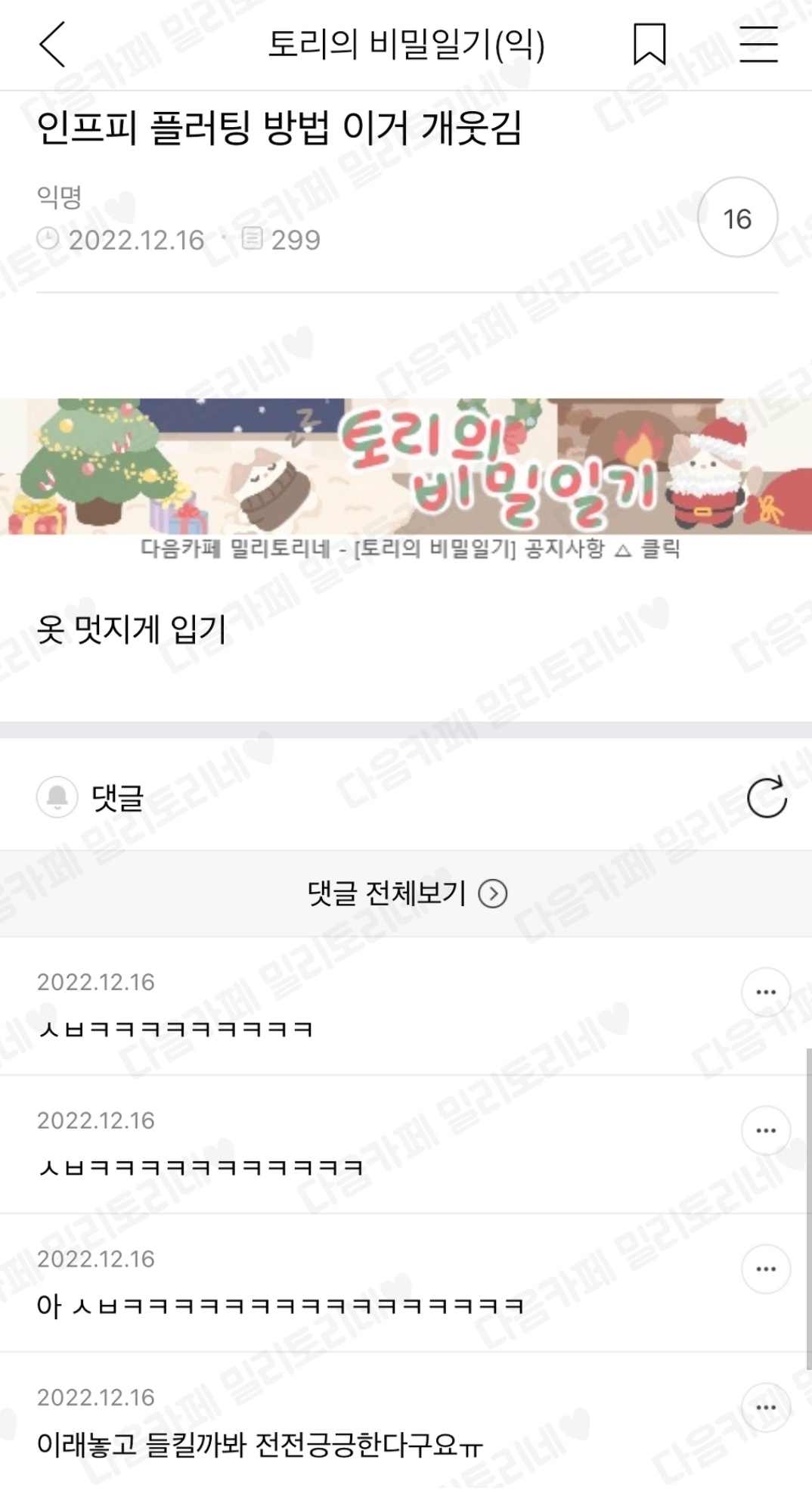 다른 사람들이 갑자기 내가 옷에 신경쓴 거 보고 눈치챌까봐 조마조마함