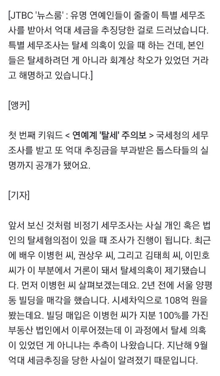 이렇게 스타들의 탈세논란이 불거지면 사실 일반 대중은 상대적인 박탈감을 많이 느낄 수밖에 없거든요. 모두 성실하게 납세하기 꼭 부탁드립니다.