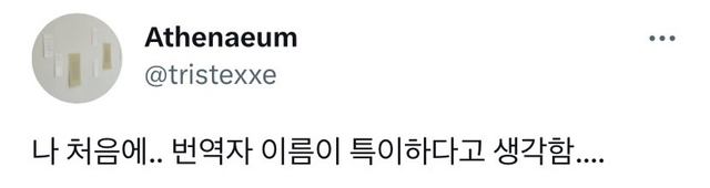 [흥미돋]나 처음에 번역자 이름이 특이하다고 생각함.twt 작성자Titanic|작성시간23.03.09|조회수11,588 목록 댓글 14 글자크기 작게가 글자크기 크게가 출처 : https://mobile.twitter.com/tristexxe/status/1198549924276654081 다음검색 현재 게시글 추가 기능 열기 북마크 공유하기 신고 센터로 신고 댓글 댓글 14 댓글쓰기 답글쓰기 댓글 리스트 작성자행정안전부 | 작성시간 23.03.09 나는 고른이, 엮은이도 안다 작성자배..고..파.. | 작성시간 23.03.09 브리트니 점례 같아뭔갘ㅋㅋㅋ 박혜란 고르고 작성자말러 | 작성시간 23.03.09 박혜란 고르곤 졸라 작성자가을웜톤 | 작성시간 23.03.09 박혜란 씨와 고르고 씨…? 작성자녹빛 | 작성시간 23.03.09 세례명이신가봐 댓글 전체보기