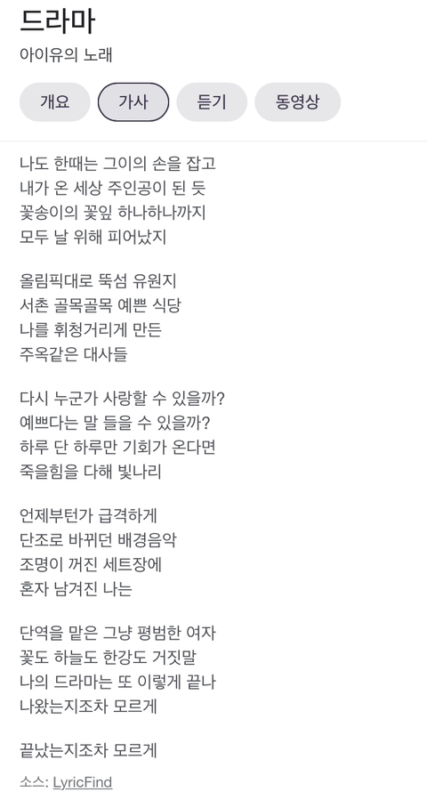 가사 보고 읊조려보니 여러가지 생각들어ㅠ