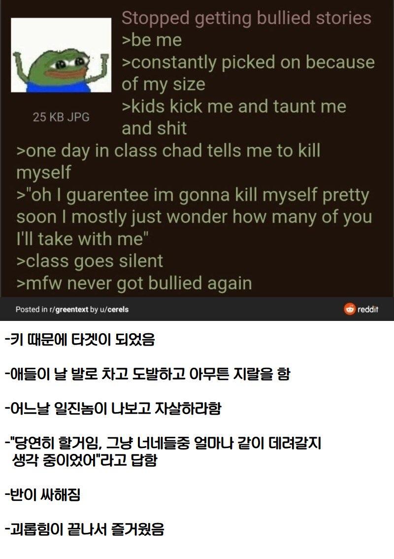 학폭가해자가 총 맞아 죽으면 운좋게 정당방위 처리되지 않는 이상 완전무결한 피해자는 없듯 사법에서 학폭피해자가 총기사건 가해자로 낙인찍혀버리면 결국 학폭가해자는 총기사건 피해자가 돼버리고 그렇게되면 살아남은 학폭피해자의 앞날에 도움되는 일이 거의 없을 거라고 생각해서 총기는 근본적 해결 방법이 아니란 의미로 원댓 달았던 거였어 -
