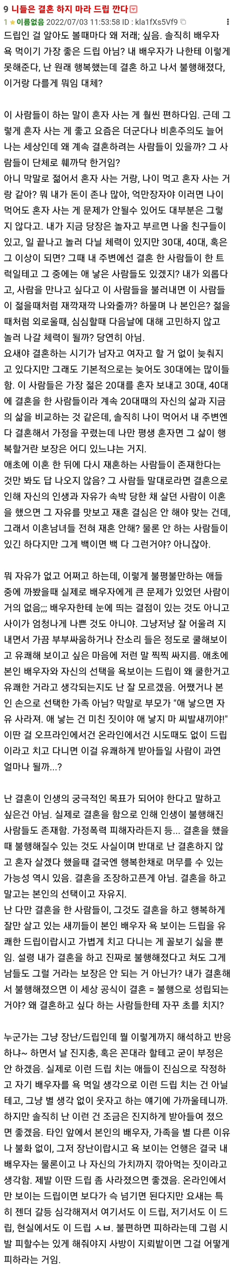 작성자못생긴한남 알러지있음 작성시간 23.03.14 저소리씨부리는 남자한테는 나도 결혼하면 남자가 밖에서 그런소리하고다닐까봐 결혼못하겠다고함ㅋㅋㅋㅋ