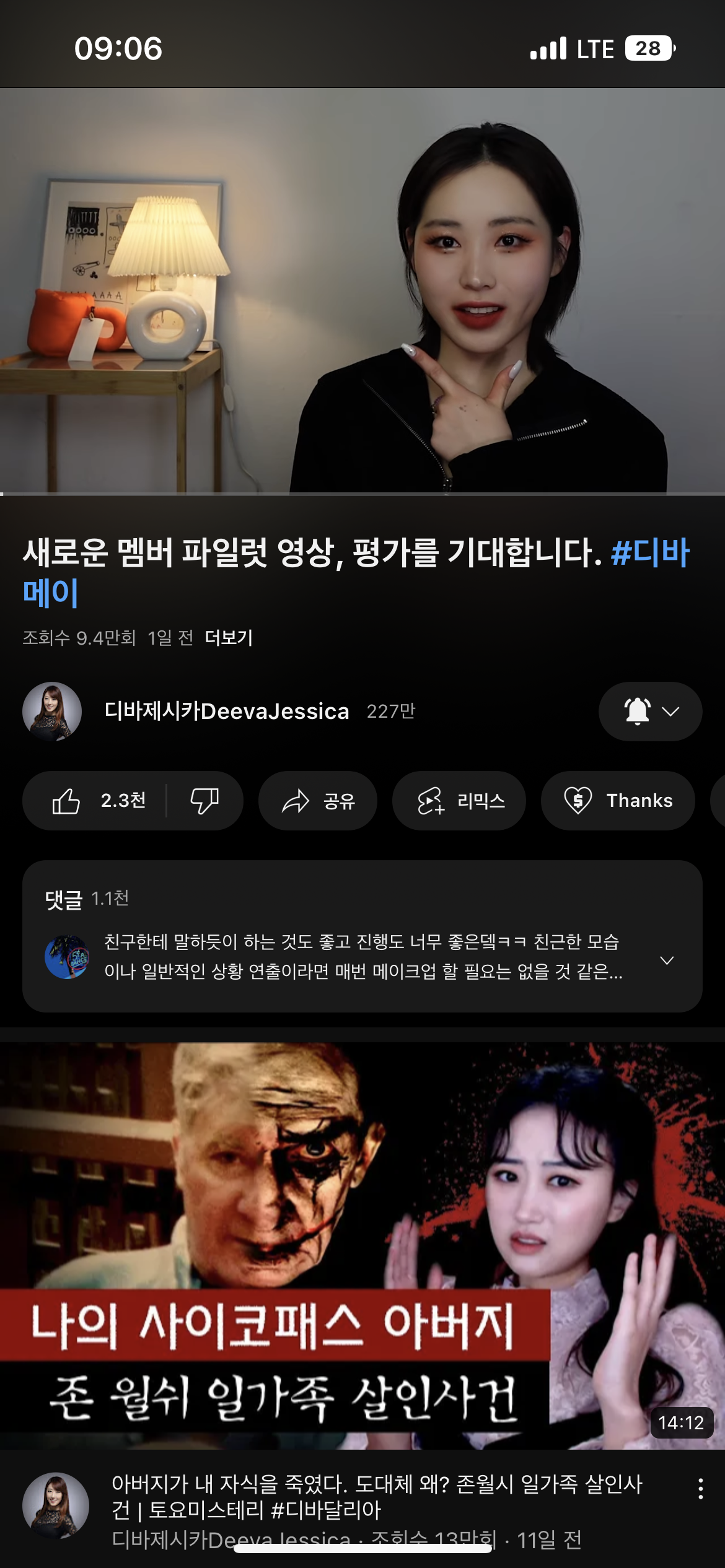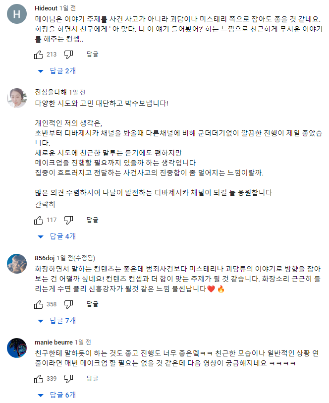[흥미돋]디바제시카 채널 새로운 진행자 [디바달리아]에 이은 [디바메이] 작성자스텐|작성시간23.03.17|조회수9,872 목록 댓글 3 글자크기 작게가 글자크기 크게가 출처 : 여성시대 스텐새로운 진행자 영상이 올라옴!화장하면서 이야기 소개해주는데 반말로 해서 친근함이 느껴짐호불호가 갈리는 컨셉인 듯 하나… 점점 개선 될거같아댓글반응첫 뉴 진행자였던 디바달리아!점점 발전해가는 모습을 보며 응원하게 되더라문제시 삭제 홍보 아님 다음검색 현재 게시글 추가 기능 열기 북마크 공유하기 신고 센터로 신고 댓글 댓글 3 댓글쓰기 답글쓰기 댓글 리스트 삭제된 댓글입니다. 답댓글 작성자gkftbdlTek | 작성시간 23.03.17 디바제니가 많이 힘들다더라 ㅜㅜ 작성자귀여운괭이 | 작성시간 23.03.18 디바제시카 원래 옛날부터 유튜버들 키워주고 관리해주는 소속사 이런거 운영했었잖아 다 나가버려서 그렇지 ㅎㅎ 이번엔 진짜 오래오래 좋게 성장했으면 좋겠다 댓글 전체보기