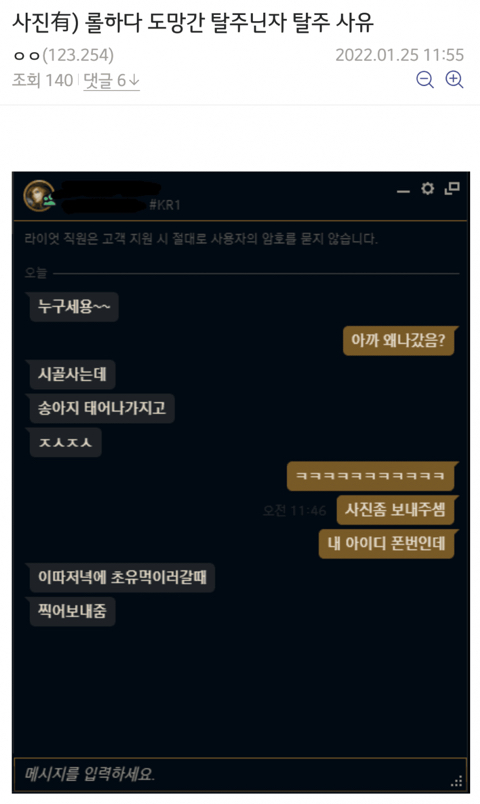 [스크랩] [기타]롤 하다 탈주한 탈주닌자에게 이유를 물어봤다 작성자홍시는 바보|작성시간23.03.18|조회수2,557 목록 댓글 15 글자크기 작게가 글자크기 크게가 출처 : 여성시대 홍시는 바보 다음검색 스크랩 원문 : *여성시대* 차분한 20대들의 알흠다운 공간 현재 게시글 추가 기능 열기 북마크 공유하기 신고 센터로 신고 댓글 댓글 15 댓글쓰기 답글쓰기 댓글 리스트 작성자나랑함께놀친구빙봉빙봉 | 작성시간 23.03.18 ㅋㅋㅋㅋㅋ ㄱㅇㅇ 작성자나미쨩 | 작성시간 23.03.18 샤코랑너무안어울려서 미쳐ㅋㅋㅋ 작성자Naos | 작성시간 23.03.18 누구세용~~ 이것도 개웃기다 삭제된 댓글입니다. 답댓글 작성자그랜드피아노 | 작성시간 23.03.18 ㅋㄱㅋㄱㅋㄱㅋㄱㅋㄱㅋㅋㄱㅋㄱㄱㅋㄱㅋㅋㅋ샤코 플레이하면서 뭐냐고ㅠㅠ 댓글 전체보기