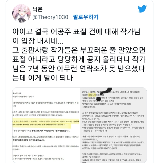 작성자우후우후후 작성시간 23.03.19 어공주 진짜 좋아해서 웹툰 올소장인데 ㅜㅜ 이렇게나 유사했었구나.. 몰랐고 슬프네