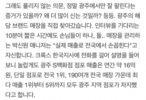 전국 190여개 점포 중 최다 매출 1~5위가 다 광주지역에서 나옴