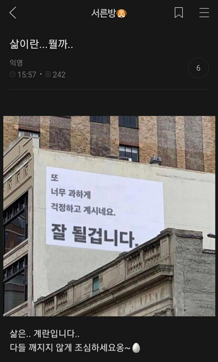 작성자나는 한마리의 백조 작성시간 23.03.20 고마워,,,🫶 취업 할라니까 자존감 겁나 떨어지고 걱정투성이었는데,,, 이거 보고 나니 좀 나아진다 우리 다들 화이팅 하자!!!!