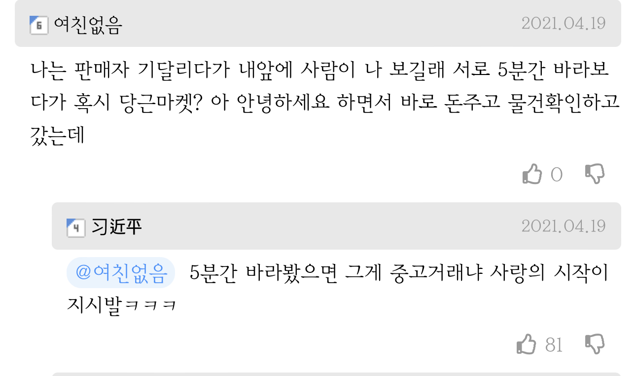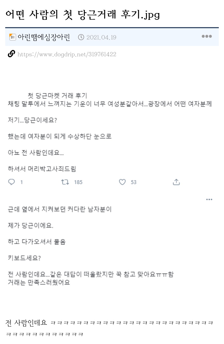 작성시간 23.03.21 난 외국인이랑 거래했는데 ㅋㅋㅋㅋㅋㅋㅋ 캐럿? 심지어 그 사람도 모국어 영어 아니여서 그냥 걍 물건 주고 돈 받고 끝