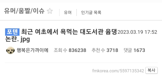 그 글 반응은 폭발적임 댓글수 1600개 이상