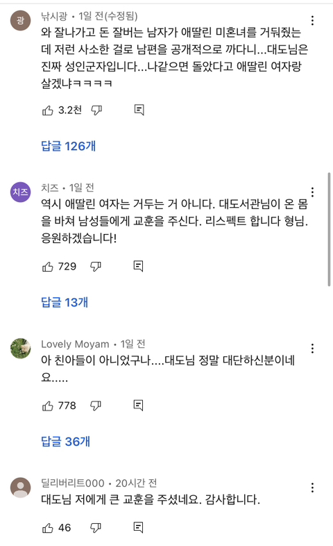 대부분의 의견은 대도서관이 퐁퐁남 보살이다라는 반응 윰댕 욕하는 반응들인듯함