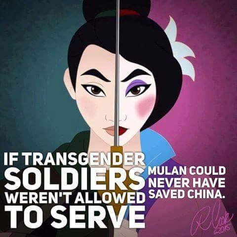 트젠들은 화장을 거부하고 머리를 자르고 '남자의 모습' 을 한다는 점에서 뮬란이 트젠이라고 우기는데 정말 말같잖은 소리