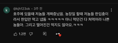 [흥미돋]당당하게 음식 뺏어먹는 캥거루가 더 무서운 이유 작성자즐겨찾는 친구가 없는 아싸|작성시간23.03.26|조회수9,862 목록 댓글 5 글자크기 작게가 글자크기 크게가 출처 : 유투브https://youtube.com/shorts/hywl5tP2gEE?feature=share호주에서 야외 캠핑하면 생기는 흔한 일 ㅋㅋㅋ www.youtube.com한입충이라 한입먹고 냅둠.. 까다로워서 떨어진 음식은 안먹는다 함… 다음검색 현재 게시글 추가 기능 열기 북마크 공유하기 신고 센터로 신고 댓글 댓글 5 댓글쓰기 답글쓰기 댓글 리스트 작성자하이츄 | 작성시간 23.03.26 한입충 극혐이내요;;;; 작성자탈코의 아름다움 | 작성시간 23.03.26 내보다 까다롭노 작성자하얀입술 | 작성시간 23.03.26 잔반검사 해야겠노 작성자국세 | 작성시간 23.03.26 와... 근데 존나 크네 ㄷㄷ 작성자리도현 | 작성시간 23.03.26 ㅋㅋㅋㅋㅋㅋㅋㅋㅋㅋㅋㅋ와그라노.,, ㅠㅠ다 먹고가라고., 댓글 전체보기