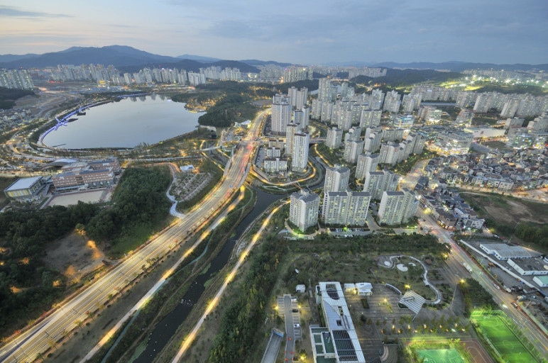 2012년 2월, 광교신도시의 개발이 거의 완료되었고 입주가 시작되었다. 수원 최고의 역작이라 할만한 규모.