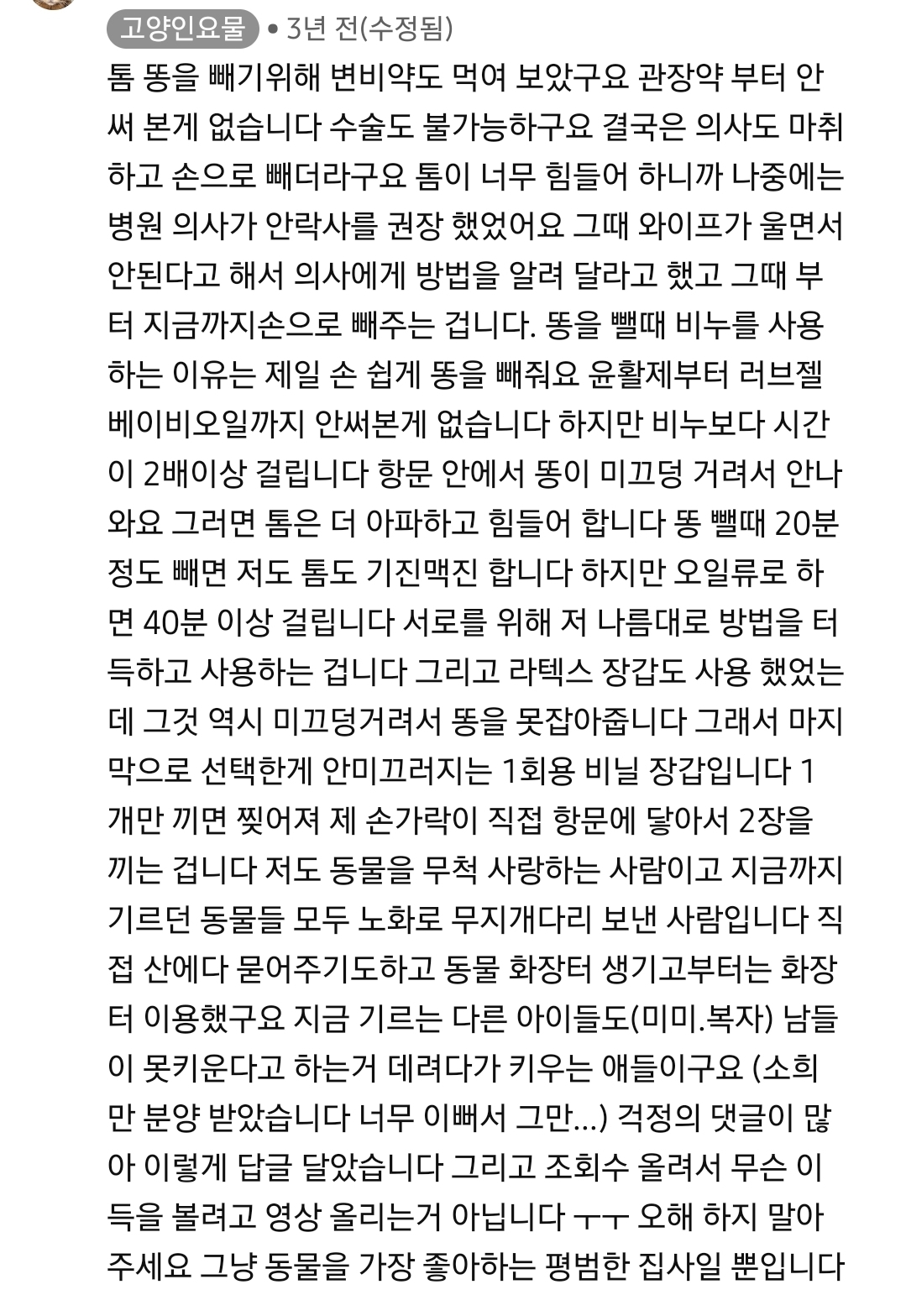 직접 똥 빼주기