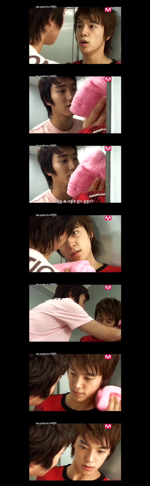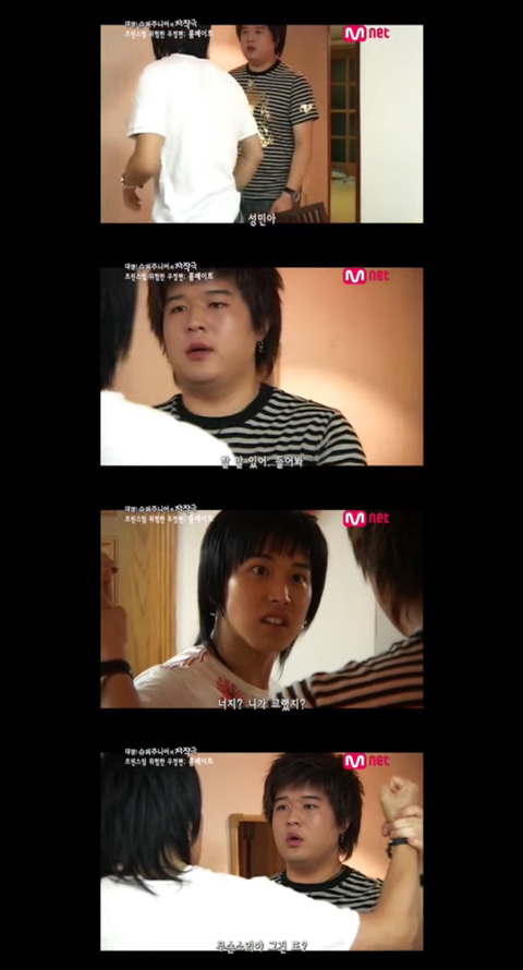 이불 들고가던 성민이랑 규현이랑 부딪힘