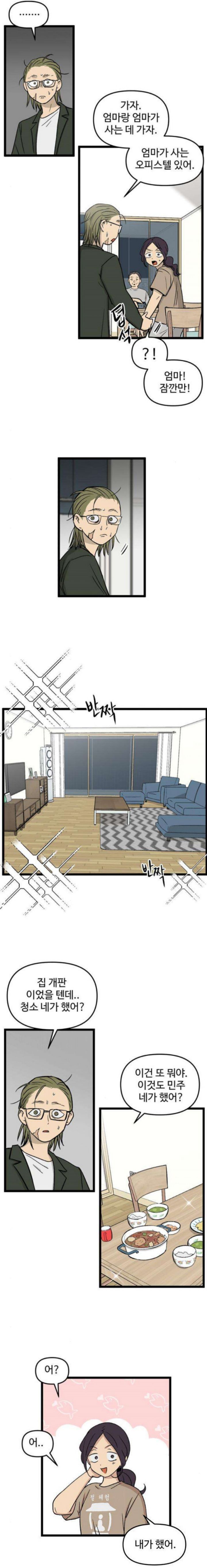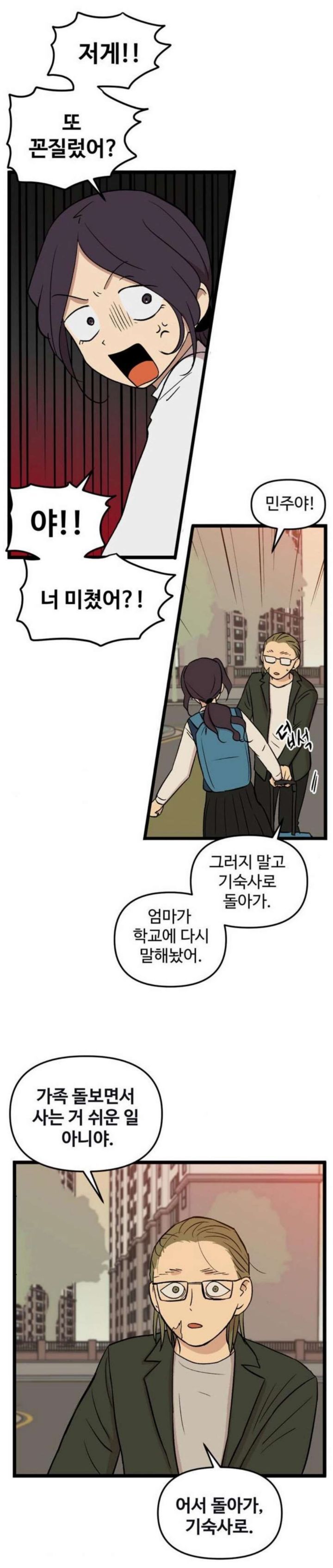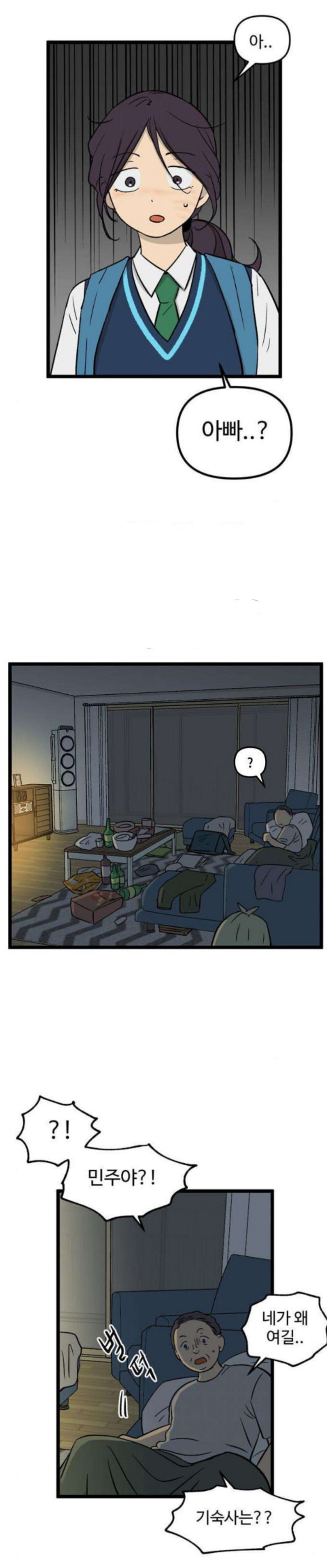 이런 빙신 같은... 아빠를 챙기러 집으로 온 민주.