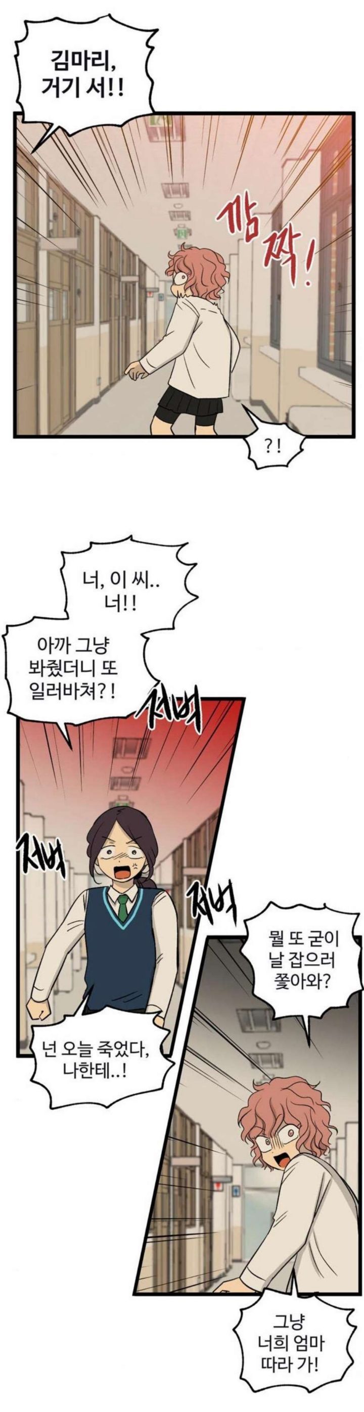 씩씩거리며 마리를 쫓아가는 민주 ㅡㅡ
