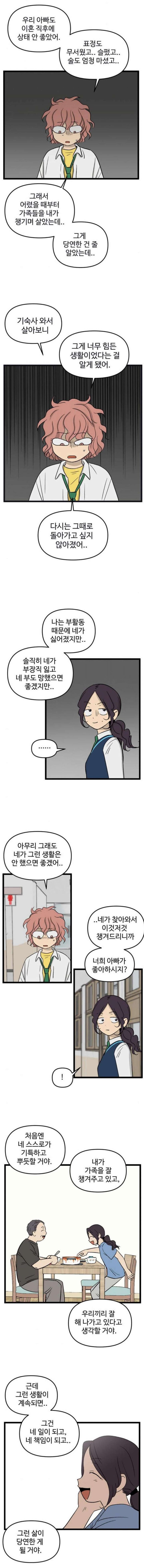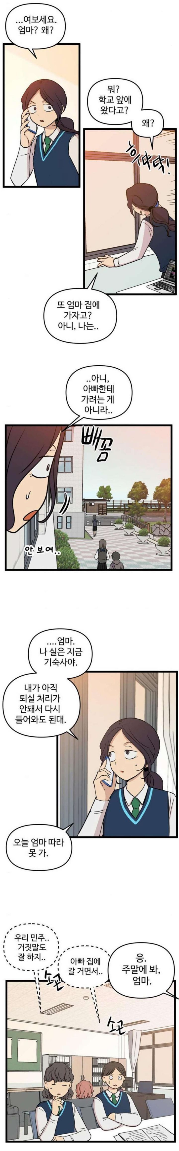 기숙사생인 민주는 이혼 준비중이라는 사실을 뒤늦게 알았어.