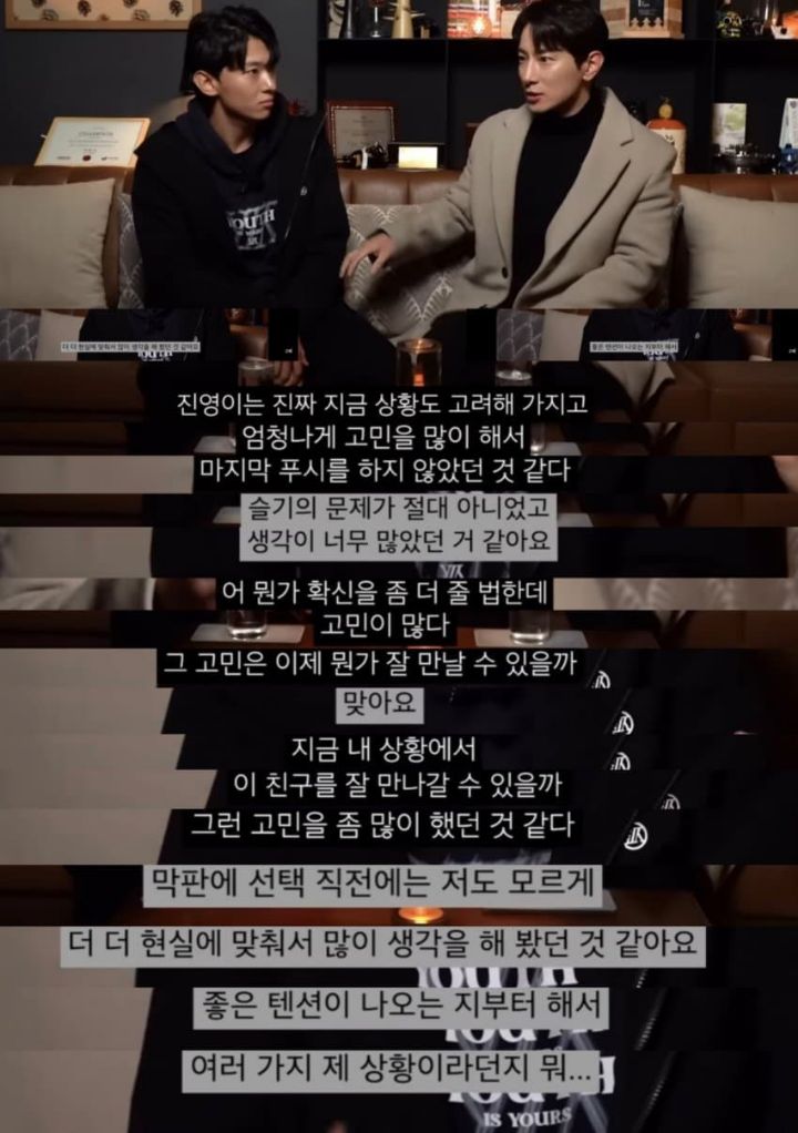(참고로 진영은 인터뷰때 본인 이상형은 3초 안에 느낌이 오는 사람이라고 함