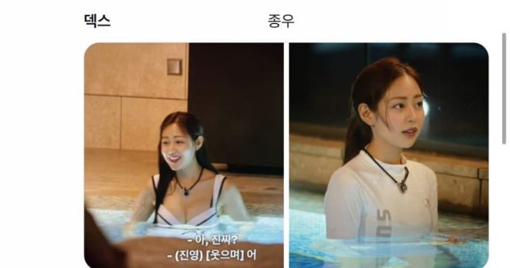 슬기 동우랑 천국도 갔을때 = 아예 수영 안함