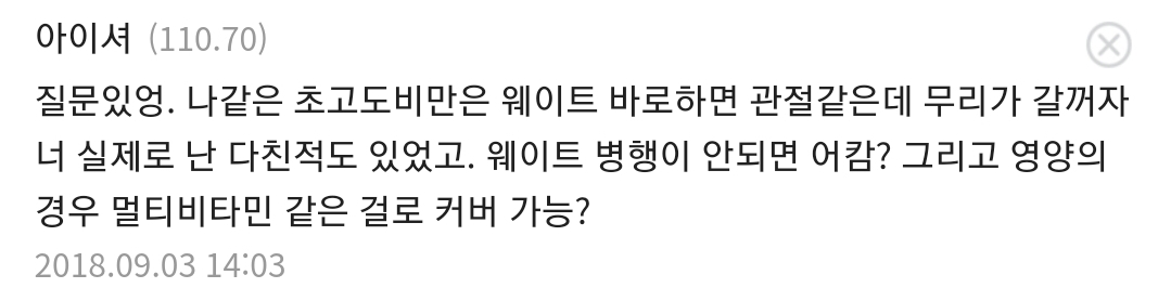 일단 저렇게 하면 무조건 살은 빠지는데 체지방이 빠지면서 근육도 함께 빠짐. 이걸 방지 하기 위해서 웨이트를 무조건 병행해야 하는데 (유산소는 아예 안해도 상관 없는게 어차피 칼로리 조절은 식이가 주가 되기 때문), 이걸 근손실을 방지한다고함.