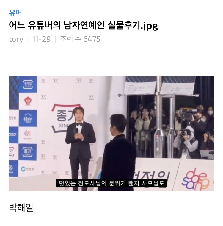 [스크랩] [흥미돋]어느 유튜버의 남자연예인 실물후기.jpg 작성자제주시조천읍|작성시간23.04.07|조회수285,500 목록 댓글 74 글자크기 작게가 글자크기 크게가 출처 : https://www.dmitory.com/issue/262541080 다음검색 스크랩 원문 : *여성시대* 차분한 20대들의 알흠다운 공간 현재 게시글 추가 기능 열기 북마크 공유하기 신고 센터로 신고 댓글 댓글 74 댓글쓰기 답글쓰기 댓글 리스트 작성자아옹ㅋ | 작성시간 23.04.17 메리크리스마스 분위기ㅋㅋㅋㅋㅋㅋㅋㅋㅋ 작성자호롱구롱 | 작성시간 23.04.18 말티즈랑 크리스마스 뭔데욬ㅋㅋㅋㅋㅋㅋㅋㅋㄴㅋㅋㅋㅋㅋ 작성자들숨에오만원씩줘봐 | 작성시간 23.04.19 푸딩백사에 나만 꼽힌거 아니구나ㅋㅋㅋㅋㅋㅋㅋㅋㅋㅋㅋㅋㅋㅋㅋ이사람 미쳤다 작성자어쩔인티제 | 작성시간 23.04.23 아 나랑 생각하는거 똑같ㅋㅋㅋㅋㅋㅋㅋ 작성자이거여 | 작성시간 23.04.23 개욱겨 댓글 전체보기