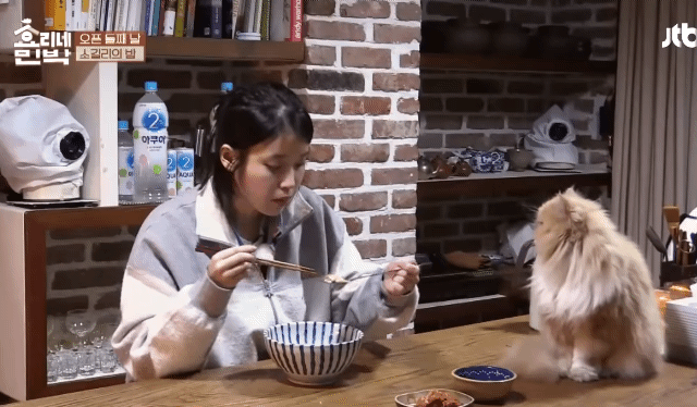 딱 1인분만 천천히 한참 씹으면서 먹어서 보기만해도 편안해지는 아이유 식사 장면. 자연스러운 분위기와 귀여운 고양이의 조합이 너무 좋음. 아이유는 천천히 먹는 영상 모음집까지 있더라.