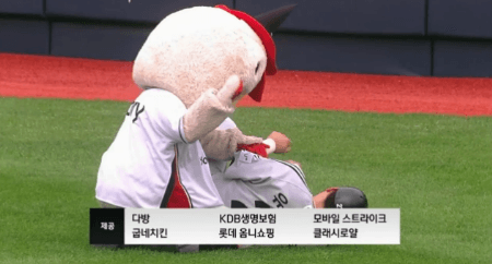 중립을 지키는 롯데유니폼과 엘지머리띠의 아빠