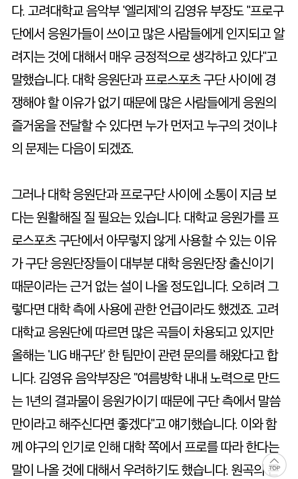 야구 응원가가 아니라 대학 응원가가 먼저더라고