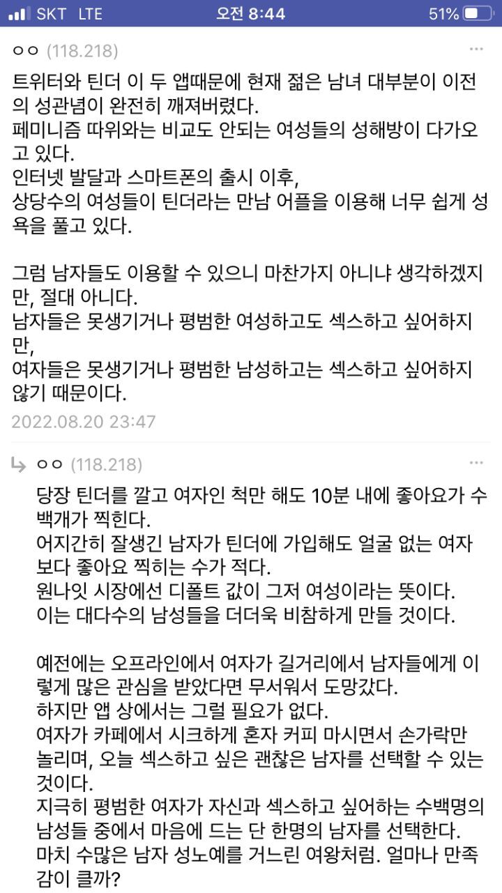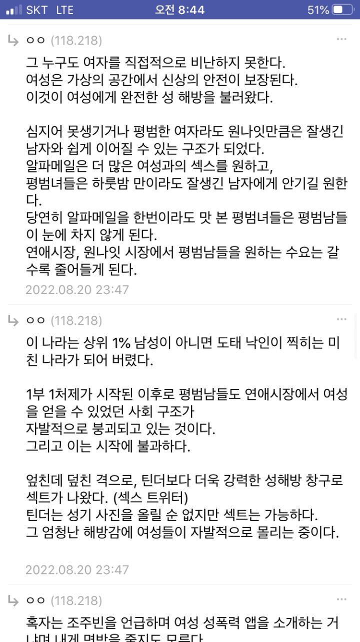 [스크랩] [기타]남녀 성관념이 깨졌다는 주갤 댓글 현자.txt 작성자로 ㅏ ㅋ|작성시간23.04.16|조회수47,404 목록 댓글 233 글자크기 작게가 글자크기 크게가 다음검색 스크랩 원문 : 도탁스 (DOTAX) 현재 게시글 추가 기능 열기 북마크 공유하기 신고 센터로 신고 댓글 댓글 233 댓글쓰기 답글쓰기 댓글 리스트 작성자살려주시라요 | 작성시간 23.04.17 개솔 찍찍 작성자내 무릎 돌려내 | 작성시간 23.04.17 이미지 확대 작성자졷갗음. | 작성시간 23.04.17 와 말 존나 많아.. 맨날 역겨운 야동쳐보고 성매매 하는게 말이많아!! 작성자얌냠얌냠얌얌 | 작성시간 23.04.17 길어 작성자너뉘귀야 | 작성시간 23.04.17 완전한 성해방이요?? ㄷㄷ안전의 보장은 무슨 직접만나서 맞을 수 도 있는데 뭔개솔 댓글 전체보기