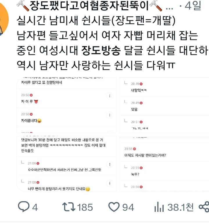 지들이 그이유로 신남연 언금하고 장도나 여시 우동탕만 패고 있는 거