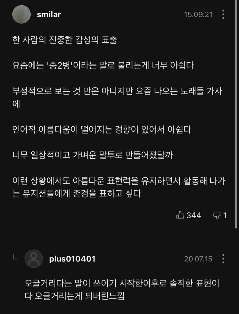 작성자돈많은_백수 작성시간 23.04.21 오글거린다는 단어 나온 뒤로 문학하는 사람들 수준으로 잘 쓴 글 아니면 진솔한 마음을 적은 글들이 다 오글거리고 부끄럽게 느껴지는거 같아..