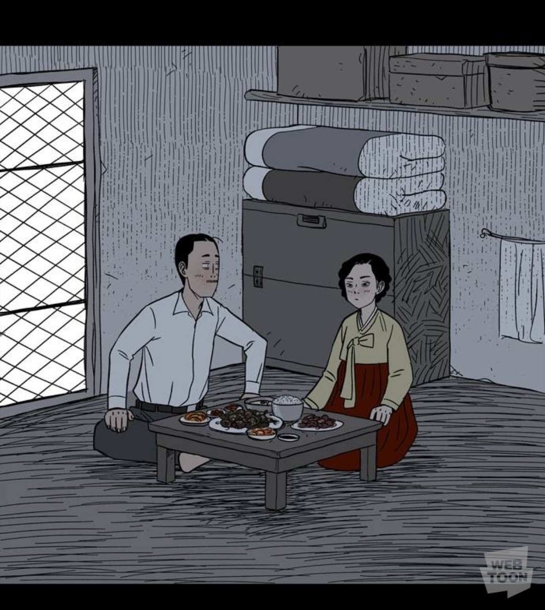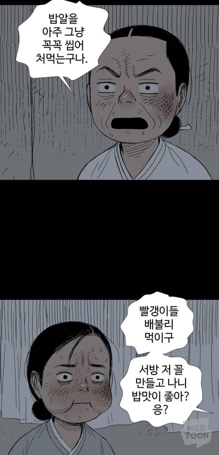 처맞은 뒤 밥 먹는 가족들
