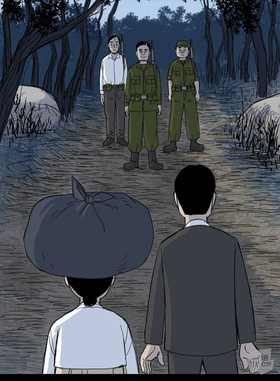 그리고 그 날 밤 북한군이 핏자국을 따라 집에 쳐들어옴