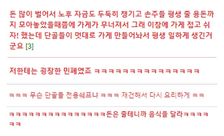 작성자김포레스텔라 작성시간 23.04.24 민폐라먄서 또 열심히 가게 운영은 하넼ㅋㅋㅋ