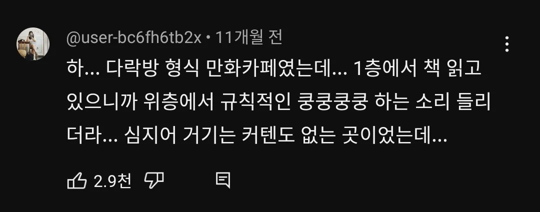 작성자어메이징그레이스 작성시간 23.04.25 모텔을 가… 남들 만화보고 뒹굴거리는 곳인데 왜 발정나서 저러냐고